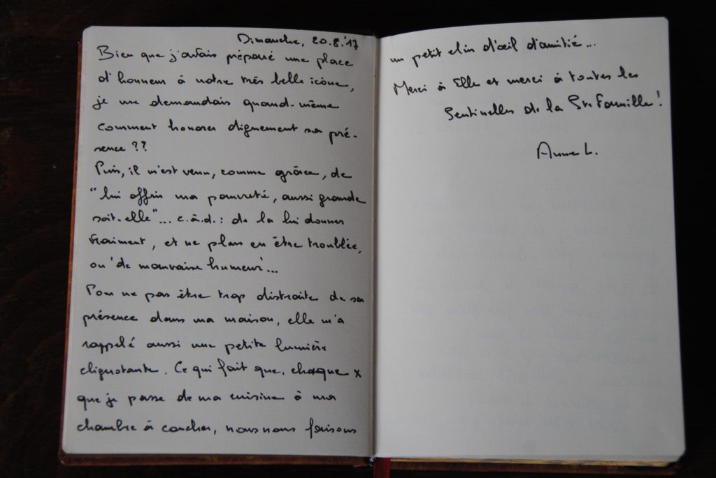 Je regarde le manteau rouge de Marie qui symbolise la vie donnée. Moi aussi , comment puis-je donner ma vie comme Marie et me laisser diviniser par le Seigneur ?